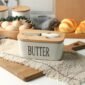 Beurrier en Porcelaine avec Couvercle Bambou & Couteau – Beurrier Hermétique de Table